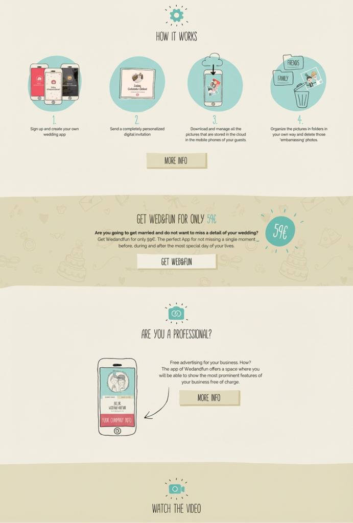 Wed&Fun és una aplicació dissenyada perquè els convidats d’un casament comparteixin les seves fotografies amb els nuvis, capturant moments únics des del punt de vista de cada assistent.