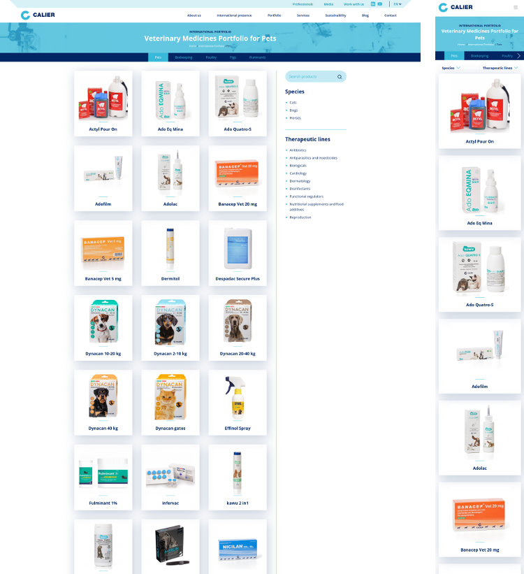 A very important section for the website was being able to display Calier’s product compendium. For this purpose we created a product content type and views with filters.