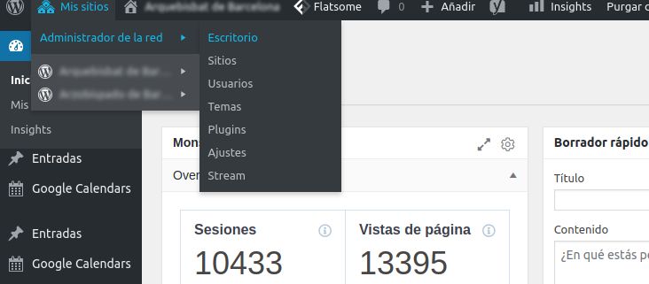 Select the site where you want to register the user — for example, the Spanish version of the site: