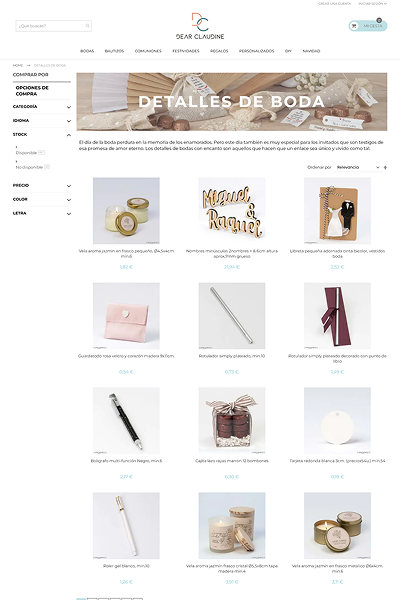 Dearclaudine is a Spanish online store specializing in personalized gifts and details for celebrations such as weddings, baptisms, communions, birthdays, and other festivities. It offers a wide range of products including fans, pins, mugs, pashminas, cardboard boxes, magnets, and guest books. Additionally, many items can be personalized to suit the needs and tastes of each customer.